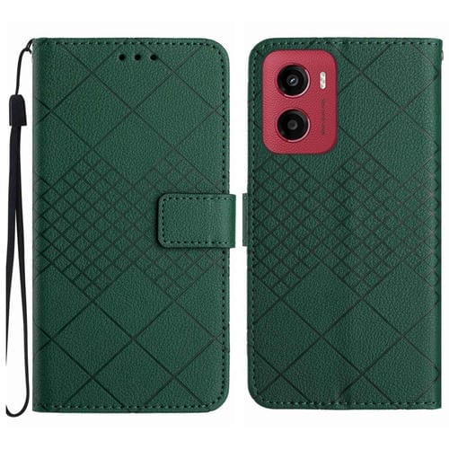 Funda de Cuero con Textura de Cuadrícula Rómbica para Motorola Moto G05 (Verde)