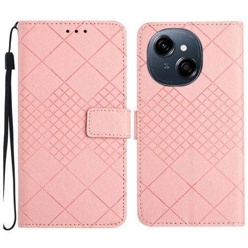 Funda de Cuero Textura Cuadrícula Rómbica para Tecno Pop 9 4G Spark Go 2025 4G (Rosa)