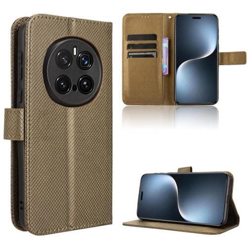 Funda de Cuero con Textura de Diamante para Honor Magic7 Pro (Marrón)