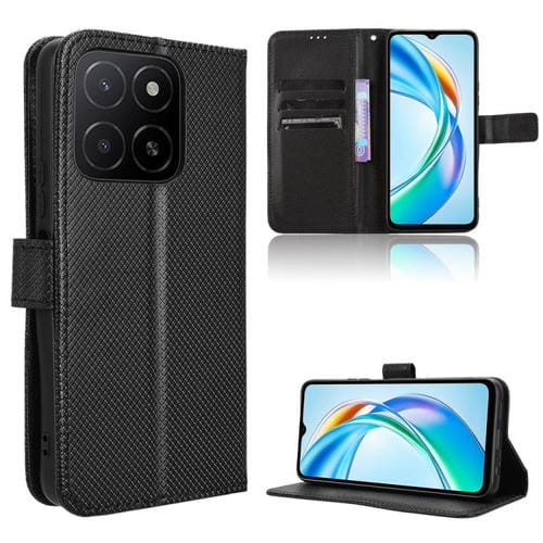 Funda de Cuero con Textura de Diamante para Honor X5B 4G (Negra)