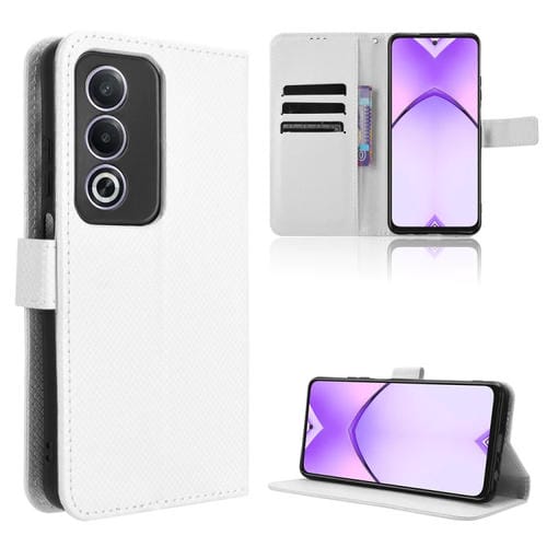 Funda de Cuero con Textura de Diamante Global para Oppo A3 Pro 5G (Blanca)