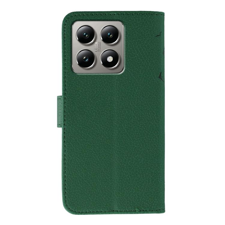 Funda de cuero con textura de lichi y estampado de plumas para Xiaomi 14T (verde)