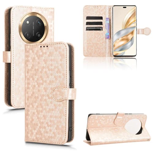 Funda de Cuero con Textura de Puntos de Panal para Honor X9C 5G y Magic7 Lite 5G (Dorada)