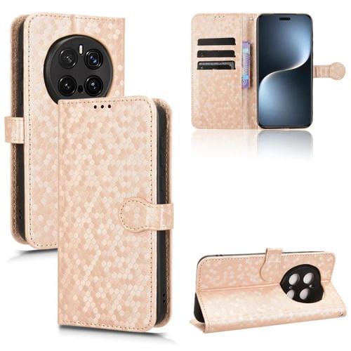 Funda de Cuero Honor Magic7 Pro 5G Textura Panal Protección (Dorada)