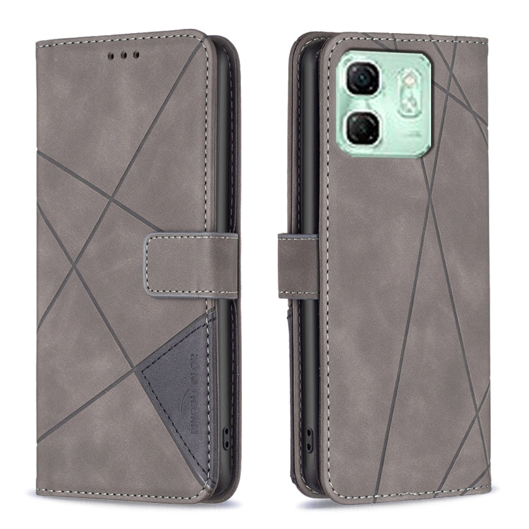Funda de Cuero para Infinix Smart 9 Hot 50I con Textura de Rombos y Hebilla Magnética (Gris)