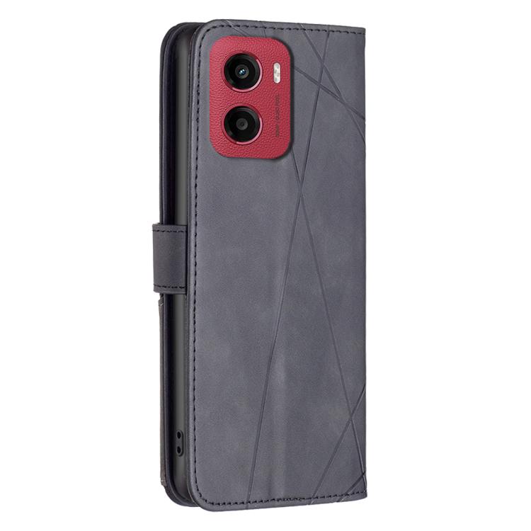 Funda de Cuero Motorola Moto G05 Textura de Rombos Hebilla Magnética (Negro)