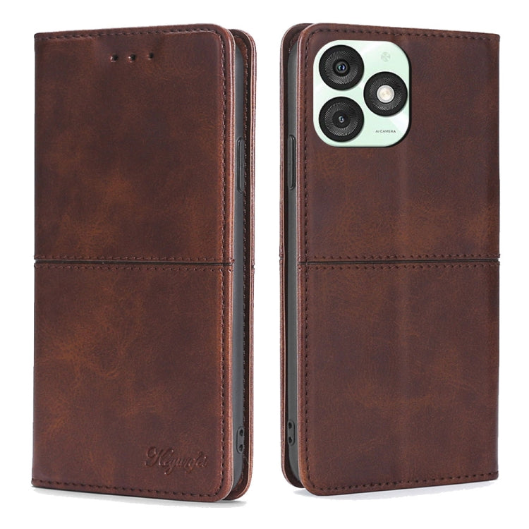 Funda de Cuero Textura de Vaca para Teléfono Itel A50 4G (Marrón Oscuro)