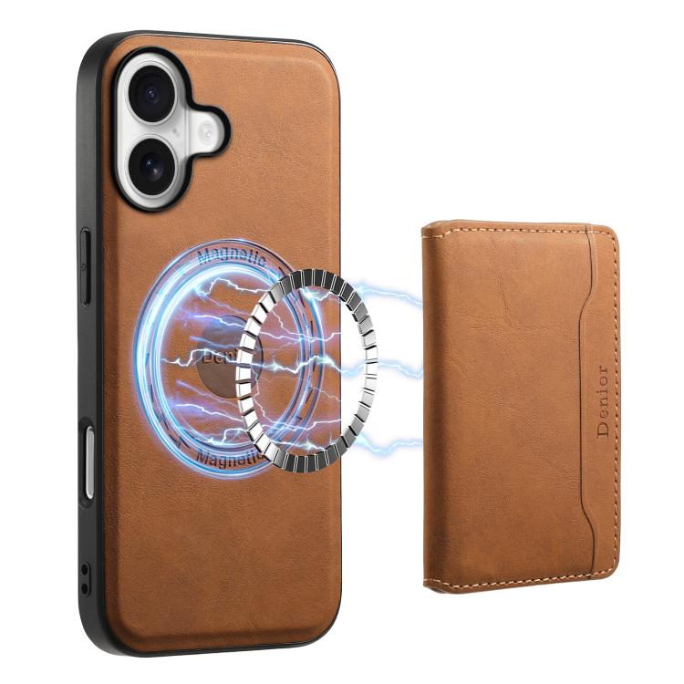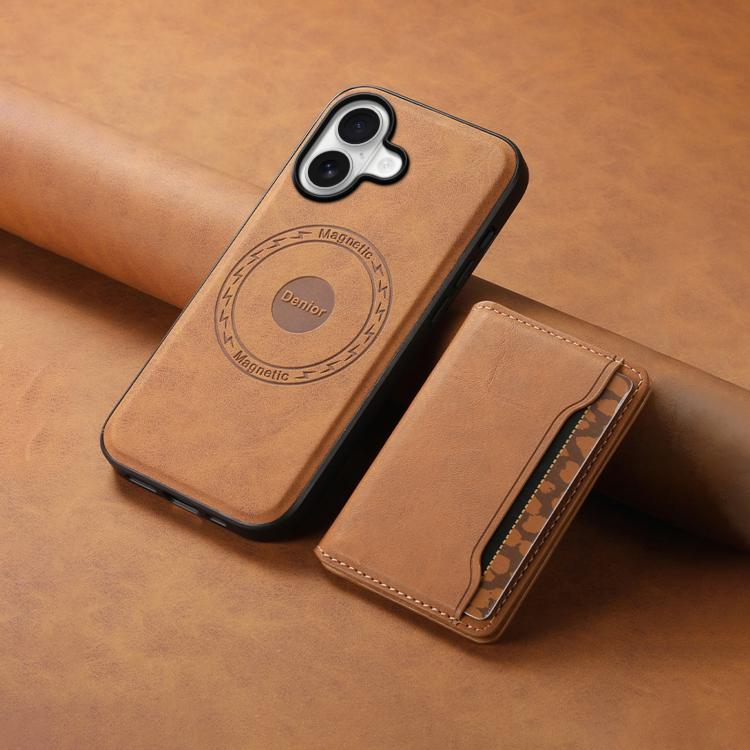Funda de cuero con textura retro Denior D13 para iPhone 17 (marrón)