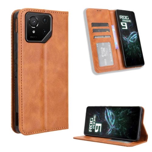 Funda de Cuero Textura Retro con Hebilla Magnética para Asus Rog Phone 9/9 Pro (Marrón)
