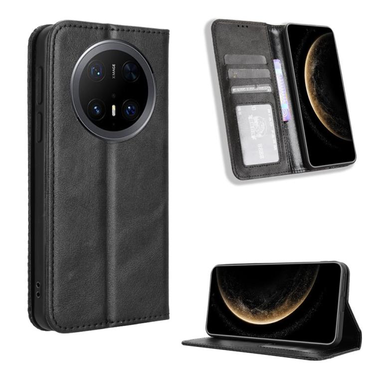 Funda de Cuero con Textura Retro y Hebilla Magnética para Huawei Mate 70 Pro/70 Pro+ (Negra)