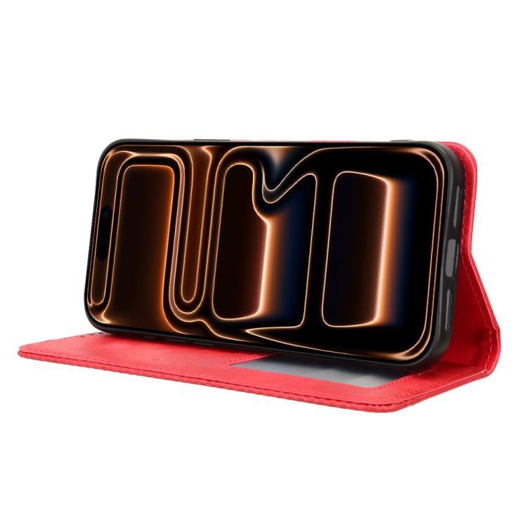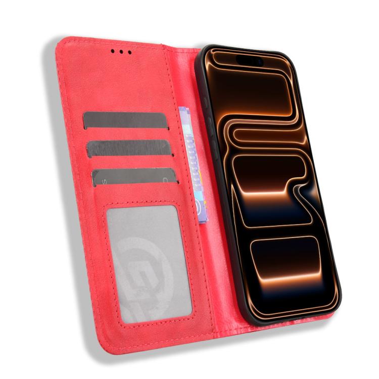 Funda de cuero con textura retro y hebilla magnética para iPhone 17 Pro (roja)