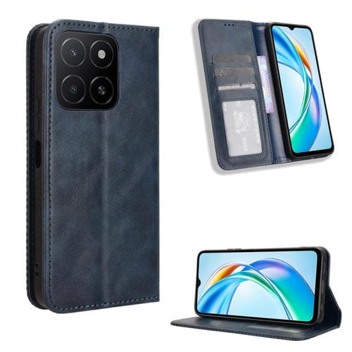 Funda de Cuero con Textura Retro y Hebilla Magnética para Honor X5B 4G (Azul)