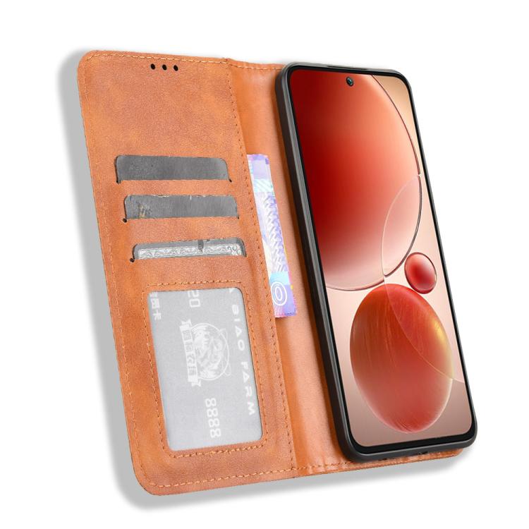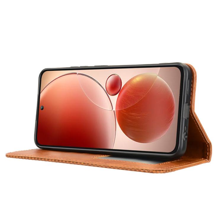Funda de Cuero Itel S25 4G con Textura Retro y Hebilla Magnética (Marrón)
