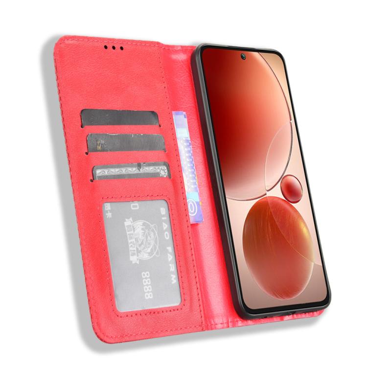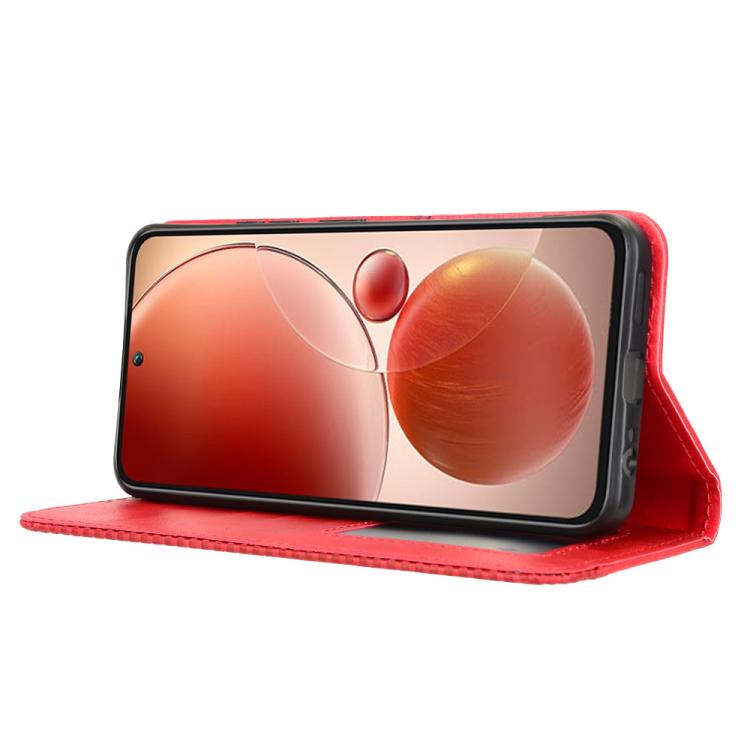 Funda de Cuero Itel S25 4G con Textura Retro y Hebilla Magnética (Rojo)