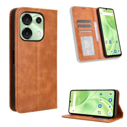 Funda de Cuero Umidigi G9 5G con Textura Retro y Hebilla Magnética (Marrón)