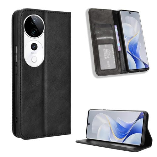 Funda de Cuero con Textura Retro y Hebilla Magnética para Vivo S19 Pro 5G/V40 5G (Negro)
