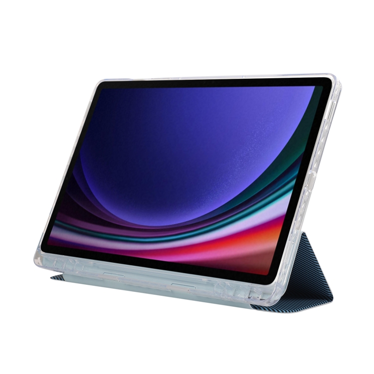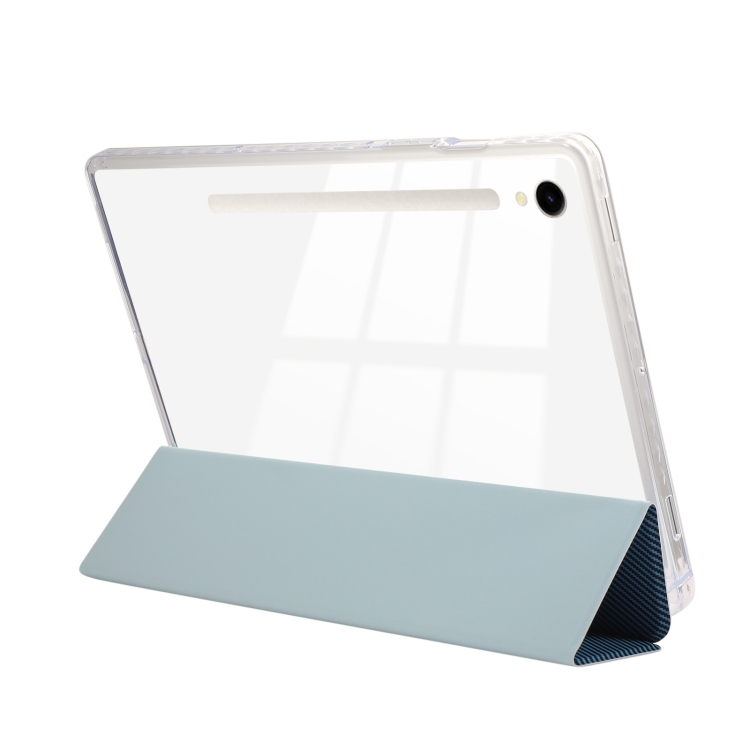 Funda para Tablet Samsung Galaxy Tab S9/S9 FE Cuero Tres Pliegues Fibra de Carbono Acrílico (Azul)