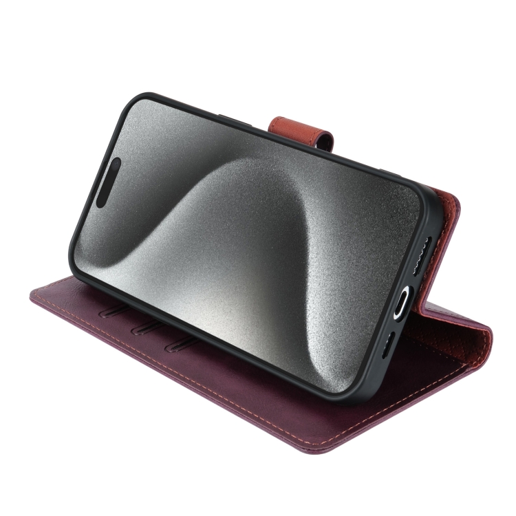 Funda de Cuero N.Bekus Csj-P1 para iPhone 16 Pro Max (Rojo Vino)