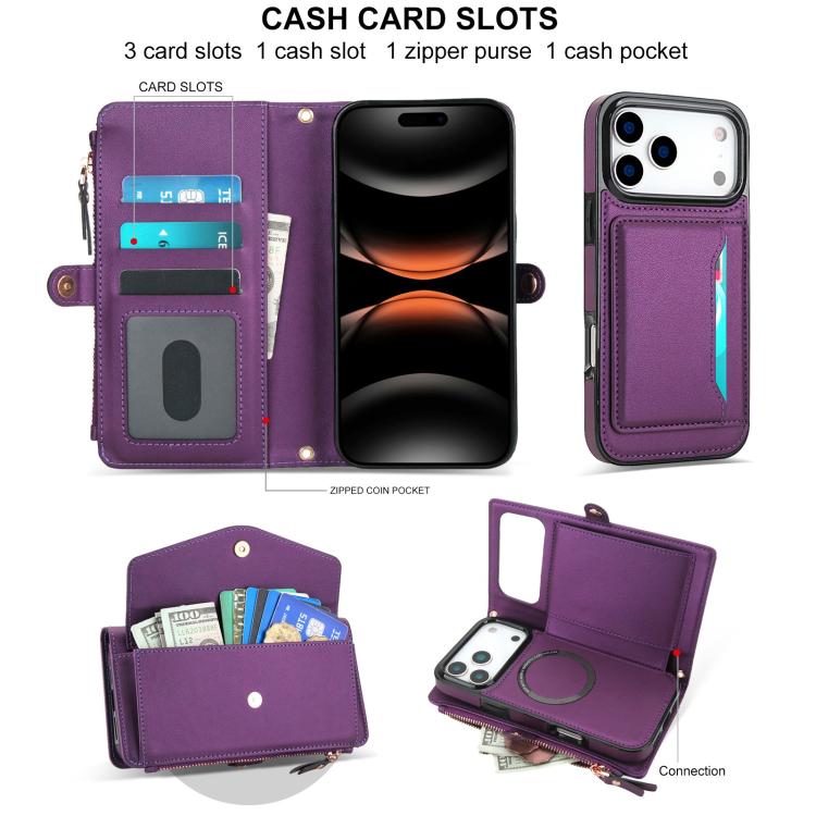 Funda de cuero desmontable con cordón para iPhone 17 Pro Max (morado oscuro)