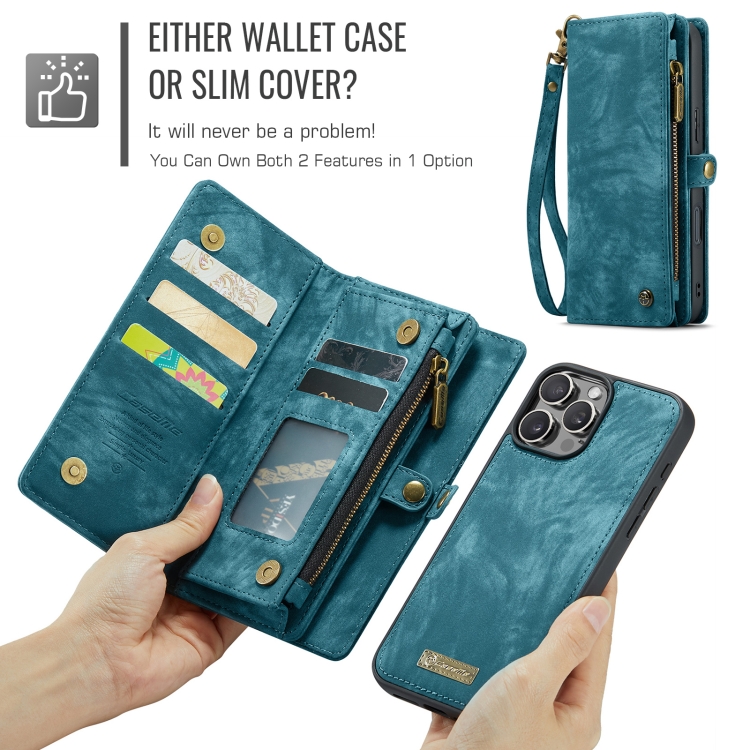 Funda de Cuero Desmontable Caseme 008 para iPhone 16 Pro Multifuncional (Azul)