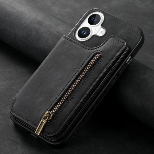 Funda de cuero estilo billetera con cremallera para iPhone 17 (negro)