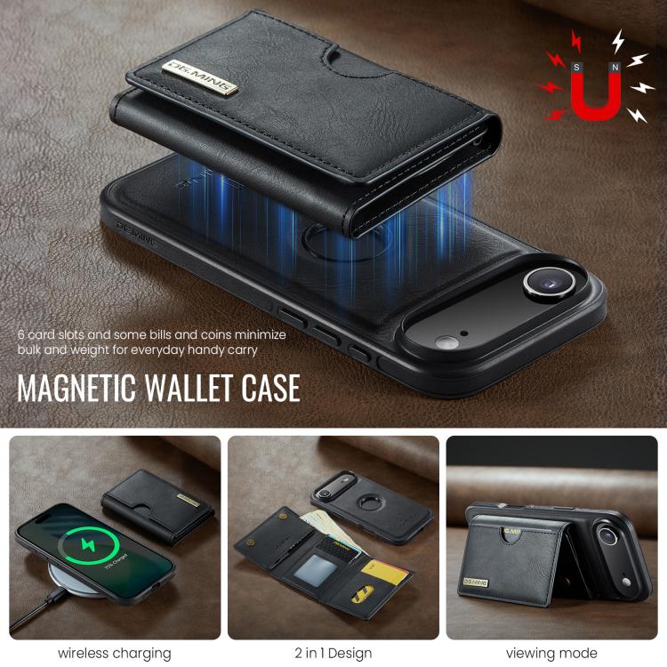 Funda de cuero extraíble para iPhone Air DG.MING M6 Series RFID con tres pliegues para tarjetas (negro)