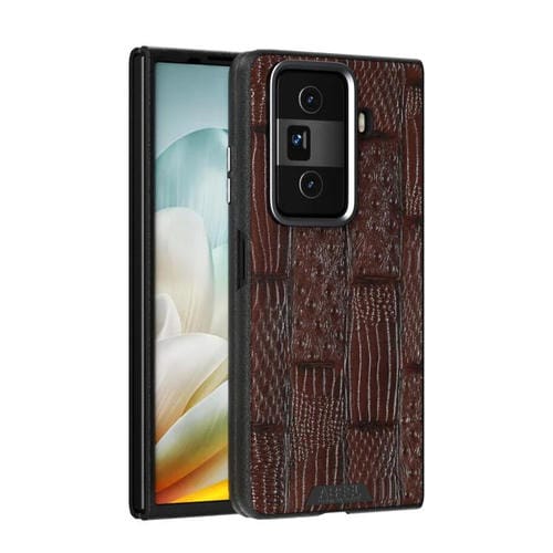 Funda de Cuero Genuino Magsafe con Micrograbado 6D para Honor Magic Vs3 (Marrón)