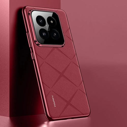Funda De Cuero Lisa Para Teléfono Xiaomi 14 Pro (Rojo Vino)