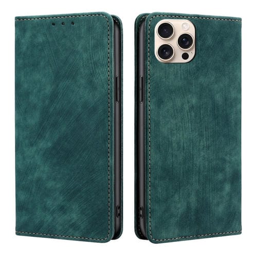 Funda de Cuero Magnética con Cepillo Antirrobo Rfid para iPhone 16 Pro (Verde)