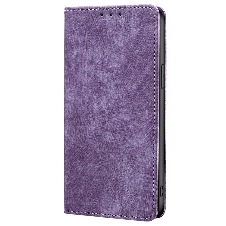 Funda de Cuero Magnética con Cepillo Antirrobo RFID para Motorola Edge 50 5G (Morado)