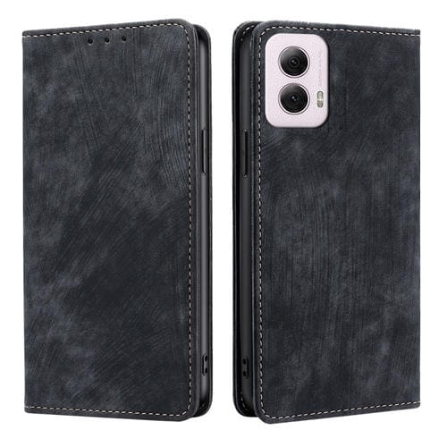 Funda de Cuero Magnética con Cepillo Antirrobo RFID para Motorola Moto G Power 5G (2024) (Negro)