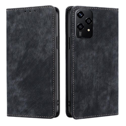 Funda de Cuero Magnética con Cepillo Antirrobo Rfid para Honor 200 Lite 5G (Negro)