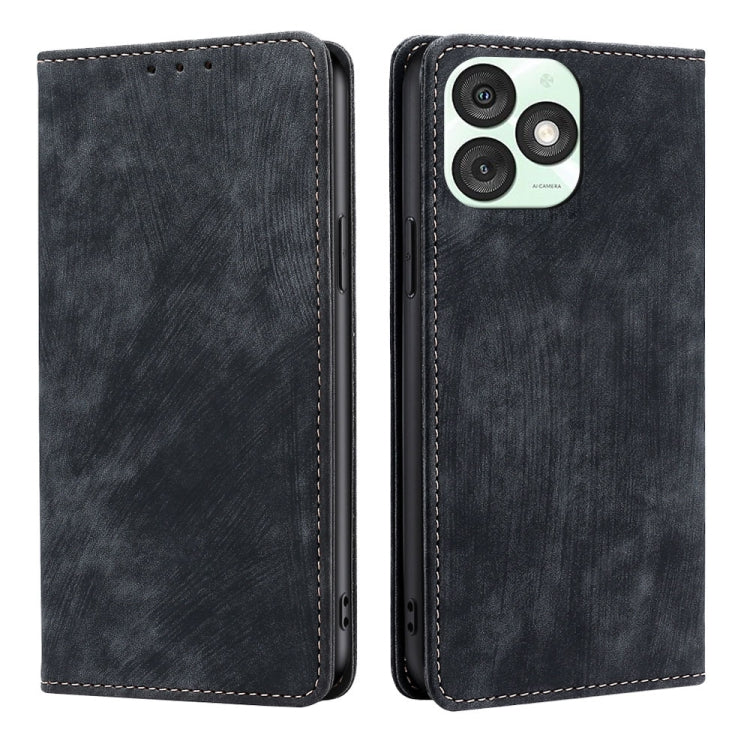 Funda de Cuero Magnética con Cepillo Antirrobo RFID para Teléfono Itel A50 4G (Negra)