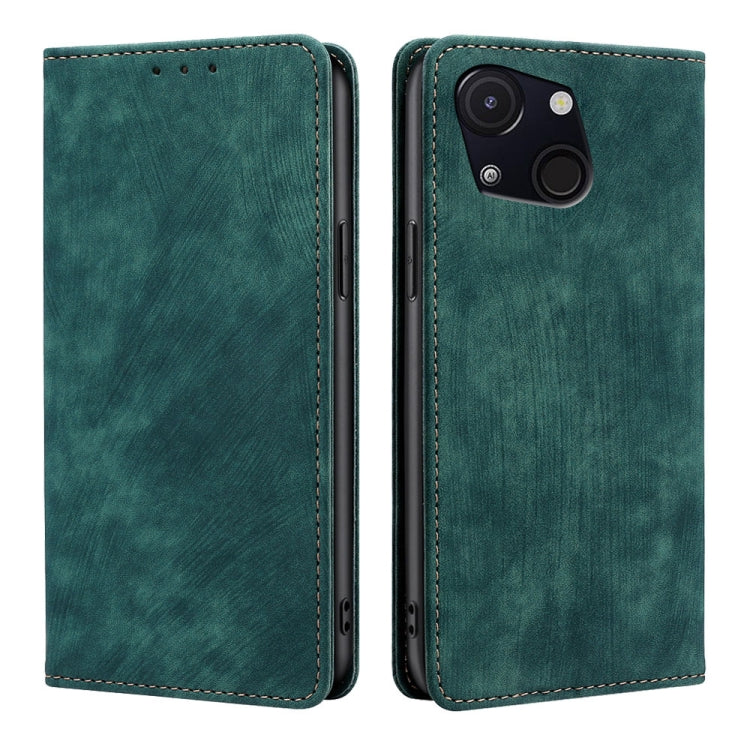 Funda de Cuero Magnética con Cepillo Antirrobo RFID para Teléfono Itel A50C 4G (Verde)