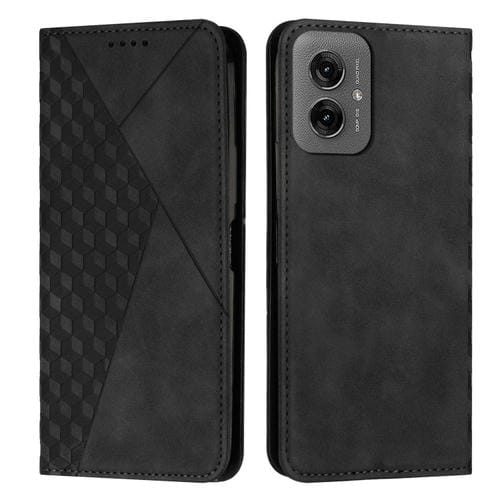 Funda de Cuero Magnética Motorola Moto G55 con Diseño de Diamante (Negra)