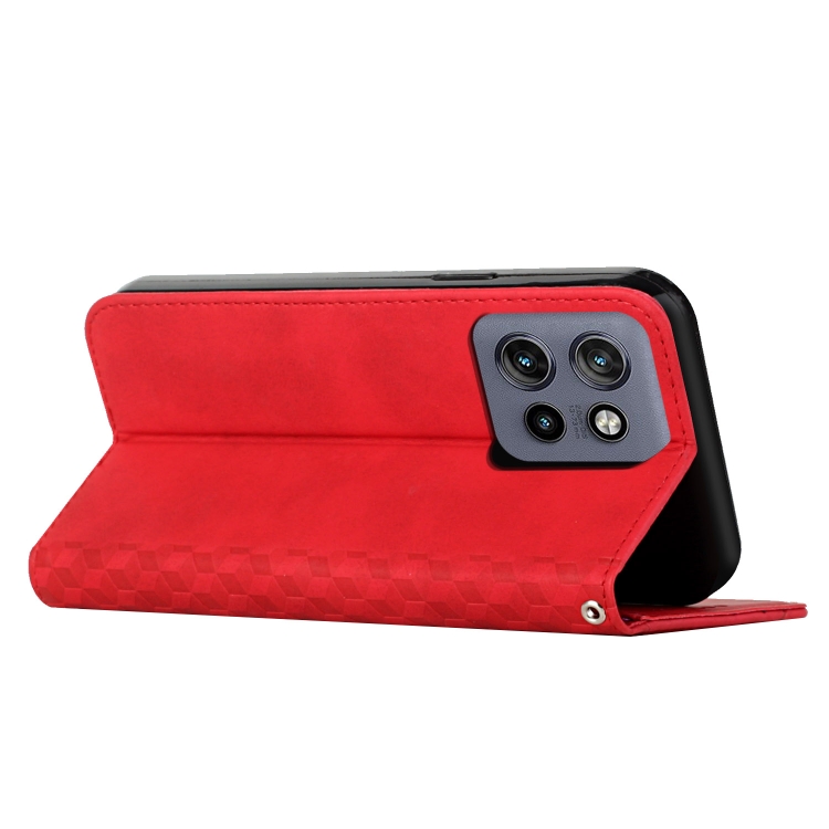 Funda de Cuero Magnética Motorola Edge 50 Neo con Diseño de Diamante y Tacto de Piel (Rojo)