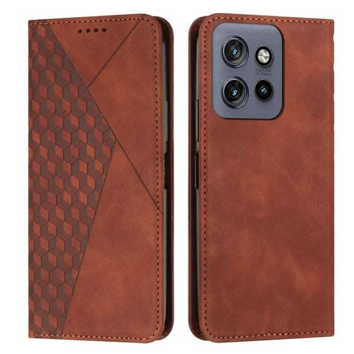Funda de Cuero Magnética Motorola Edge 50 Neo con Diseño de Empalme de Diamantes (Marrón)