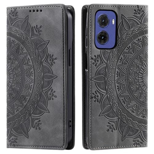 Funda de Cuero Magnética con Relieve Totem para Motorola Moto G05 (Gris)