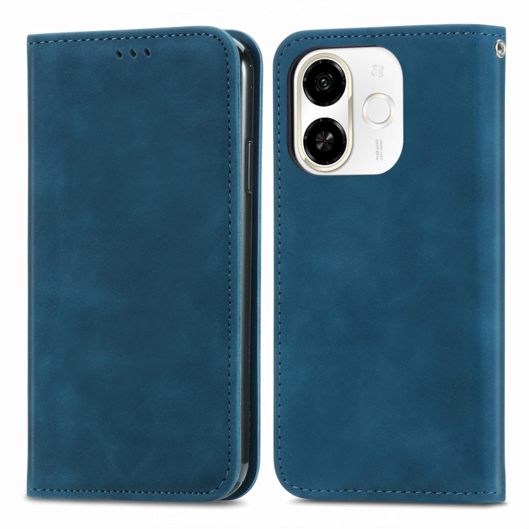 Funda de Cuero Magnética para Tecno Spark 30C 5G con Tacto Retro (Azul)