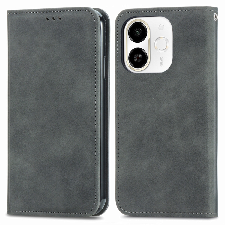Funda de Cuero Magnética para Tecno Spark 30C 5G con Tacto Retro (Gris)