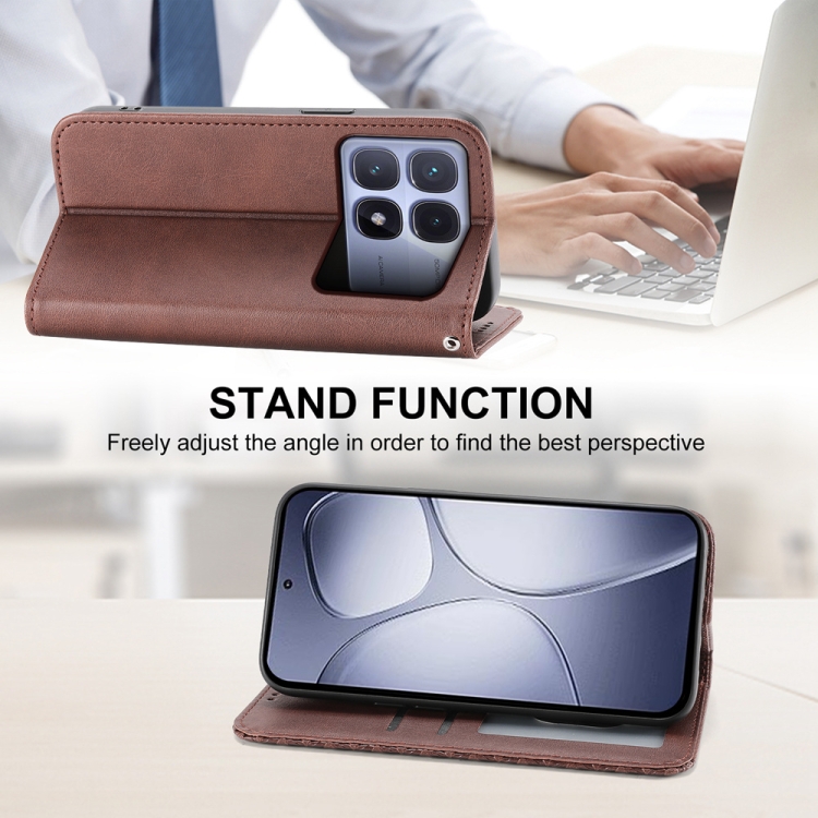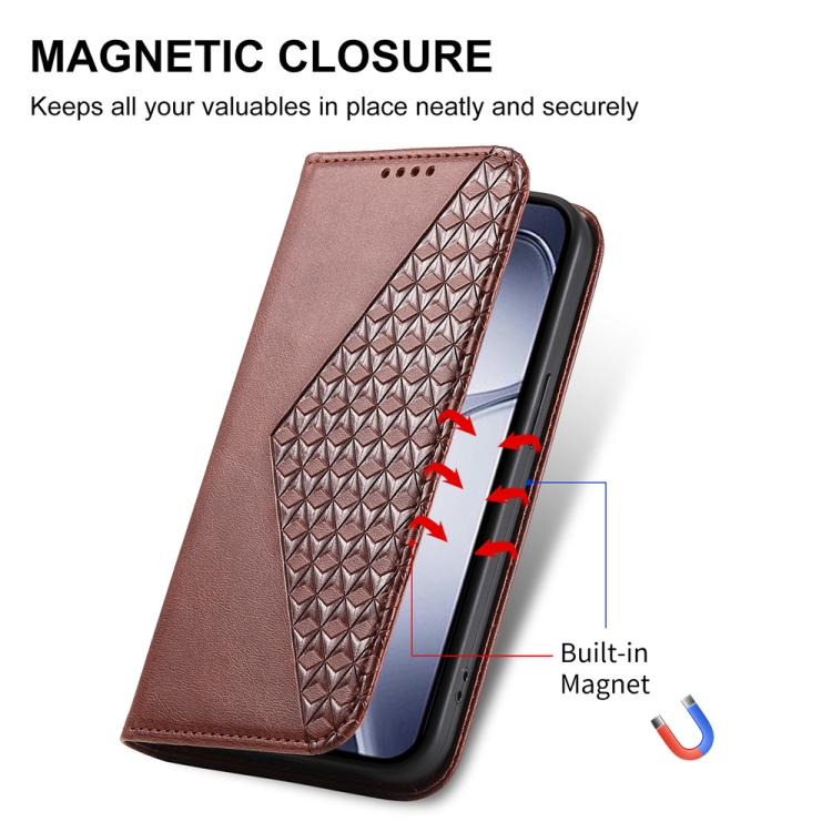 Funda de Cuero Magnética con Textura de Becerro y Cuadrícula Cúbica para Redmi K70 Ultra (Marrón)