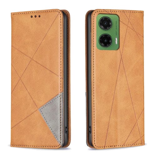 Funda de Cuero Magnética con Textura de Rombos para Motorola Moto G35 (Amarilla)
