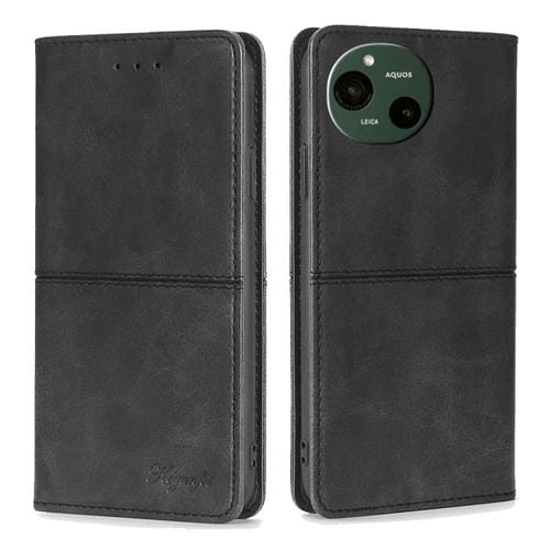 Funda de Cuero Magnética para Sharp Aquos R9 con Textura de Vaca (Negro)