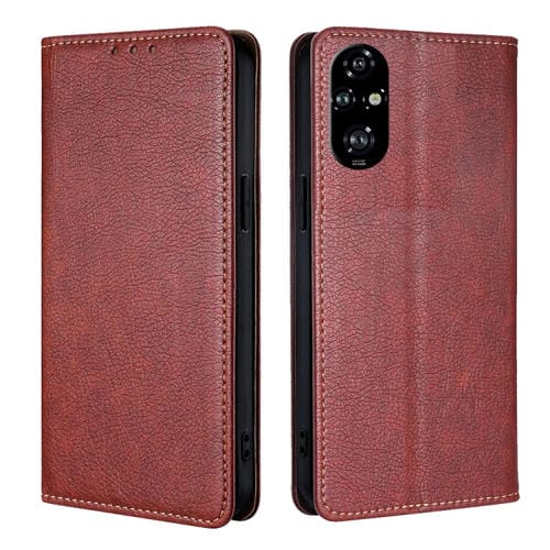 Funda de Cuero Magnética para Honor 200 Pro 5G con Acabado Brillante y Aceite Sólido (Marrón)