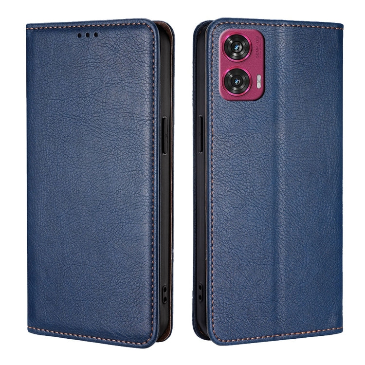 Funda de Cuero Magnética para Motorola Edge 50 Fusion 5G con Acabado Brillante y Aceite Sólido (Azul)