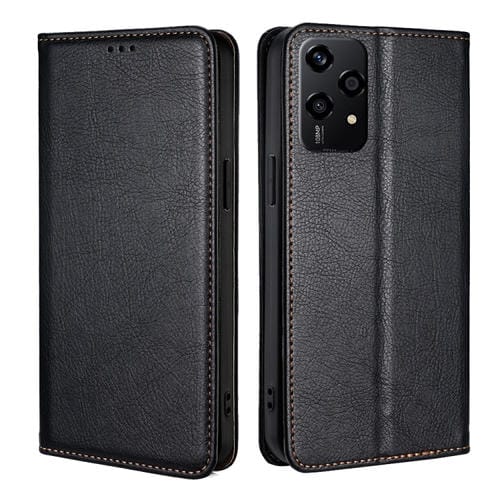 Funda de Cuero Magnética para Honor 200 Lite 5G (Negro) con Acabado Brillante