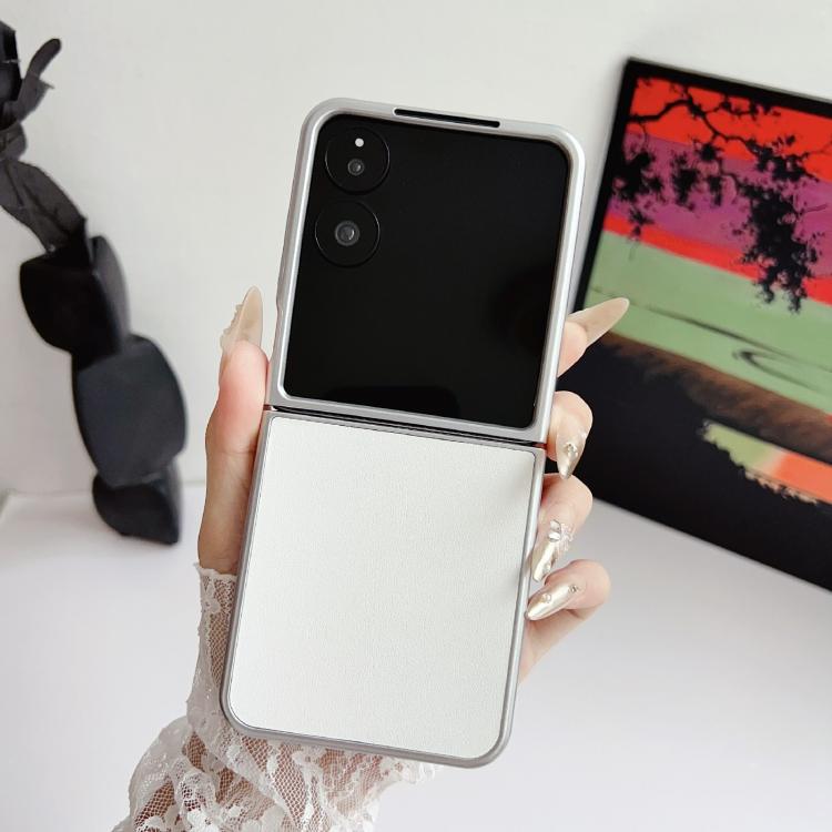 Funda de cuero Morandi con marco plateado para Xiaomi Mix Flip 2 (blanca)