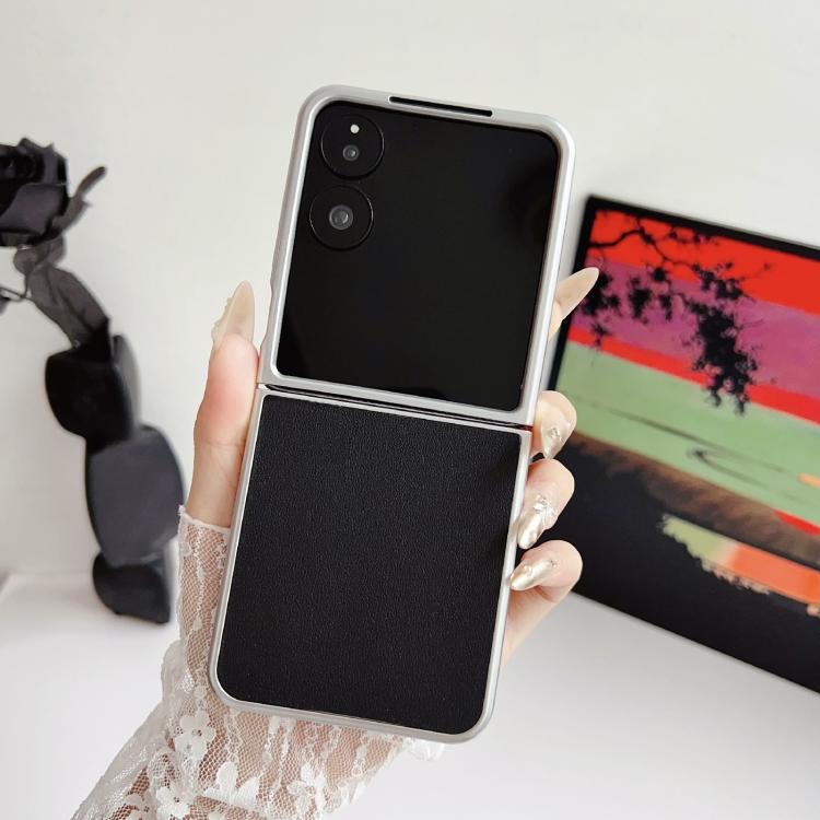 Funda de cuero Morandi con marco plateado para Xiaomi Mix Flip 2 (negro)