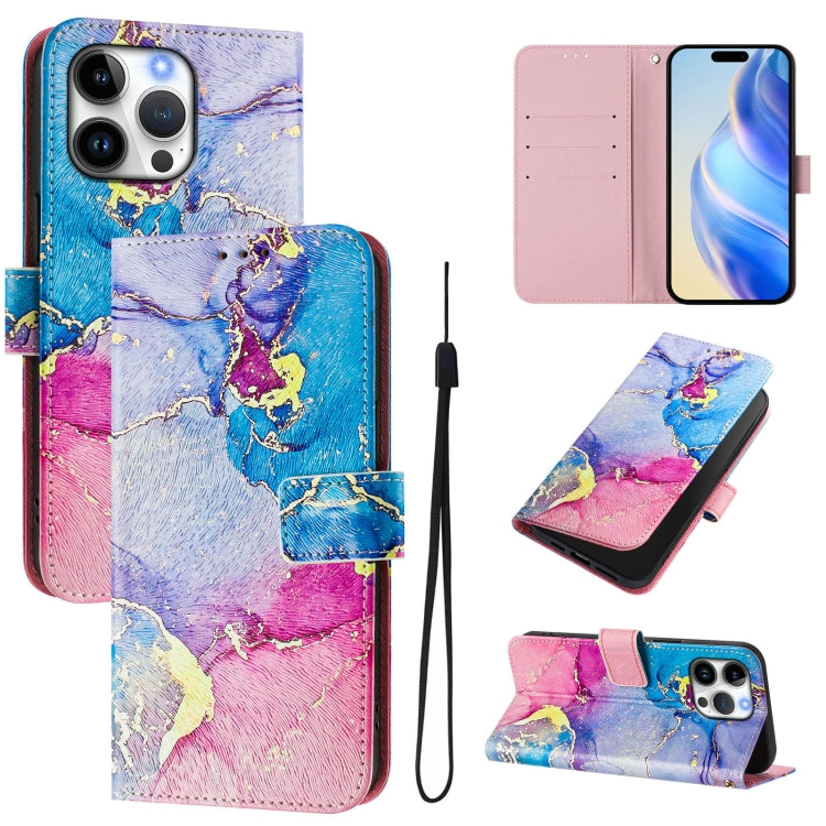 Funda de Cuero para iPhone 16 Pro con Diseño de Dibujo Artístico en Color (Mármol Colorido)