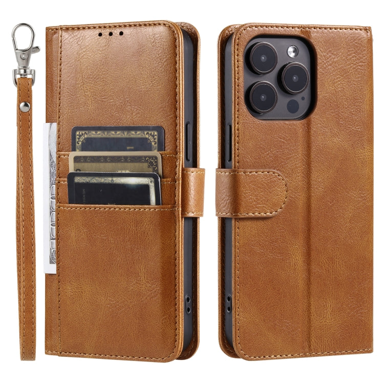 Funda de Cuero para Teléfono con Billetera para iPhone 16 Pro Max con Capacidad para 6 Tarjetas (Marrón)